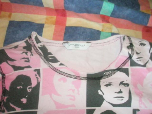 Rožinė maikutė su veidais iš new look