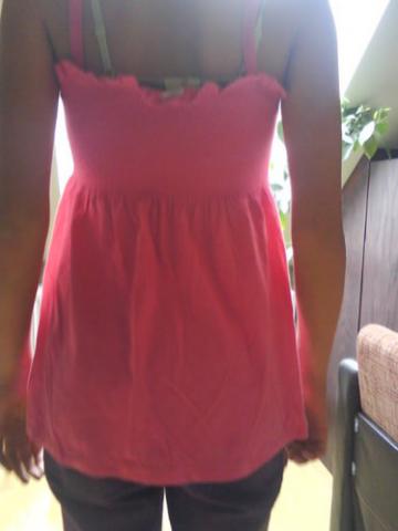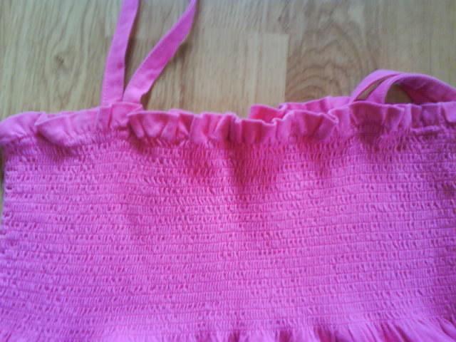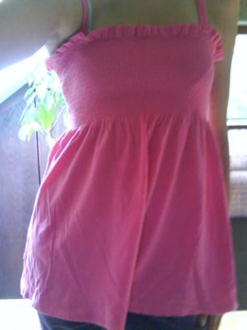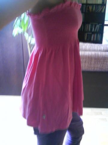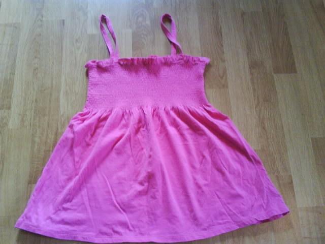 Rožinė palaidinė, per krūtinę raukta, žemyn platėjanti. Tampri, XS - M dydžio.
