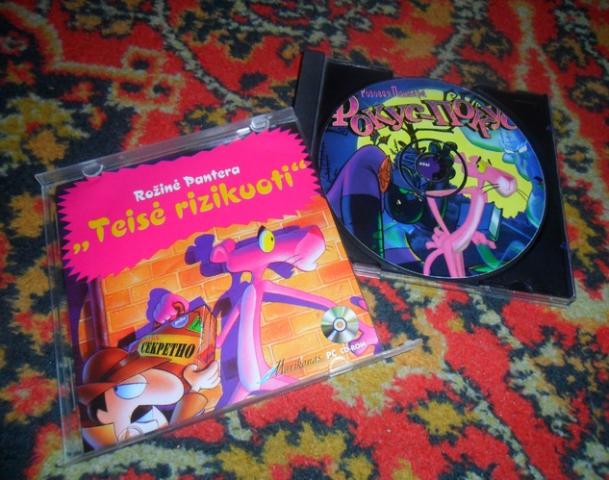 Rožinė Pantera ,,Fokusas-Pokusas. Vieno užkeikimo paslaptys..." kompiuterinis žaidimas. Diskelio dėklas yra truputi palūžęs.