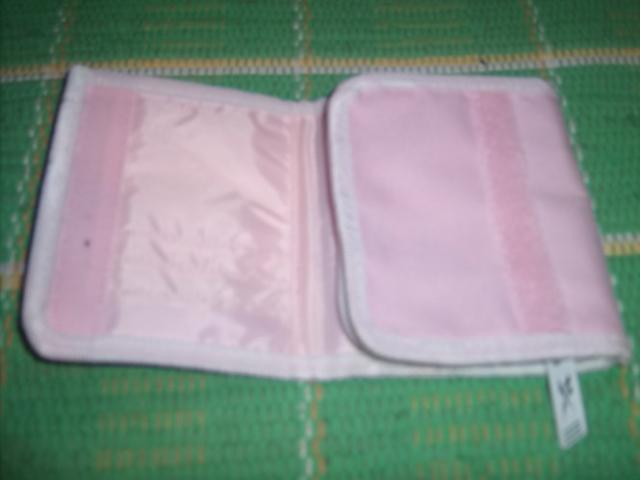 Truputį dėvėta piniginė, bet labai patogi ir nesunešiota. Yra skyrelis ir metaliniams pinigams ir kortelėms. Užsisega lipduku.