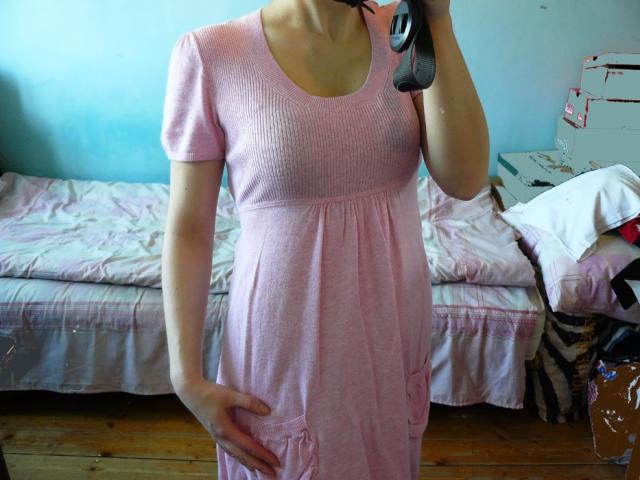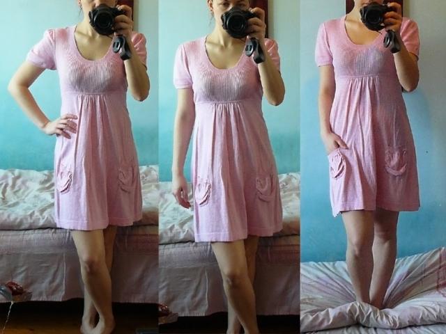 Išsimainiau, bet man neprilimpa. Dydis S/M. Lengvutė, paprasta, gaiviai vasariška :) turi dekoratyvines kišenėles. Yra viena gelsva dėmelė šalia vienos kišenėlės, bet ji gal pusės cm dydžio ir visiškai nesimato. Gal net gi išsiskalps :)