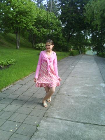 Labai graži ir patogi suknelė susegama per kaklą. Parašyta 152 cm ūgiui, bet aš nešiojau 166 cm ir atrodė puikiai :) 78 cm ilgio.
