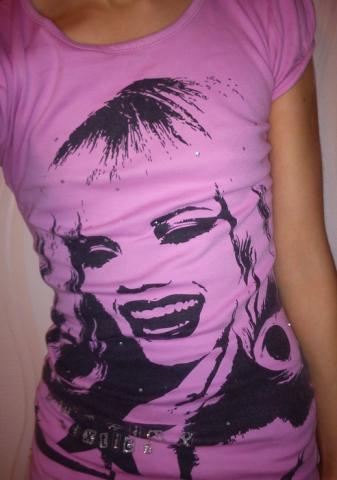 Maikutė nauja, tik be etiketės. Defektų jokių nėra. Graži spalvytė ir paveiksliukas. :) Nuotrauka daryta ant 1,68cm. panelės. Dydis atitinka etiketėje esantį parašytą dydį, manau šiaip tiktų ir S/M dydžiui, nes medžiagytė pakankamai tamposi. :)