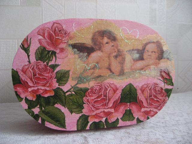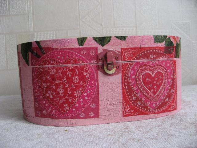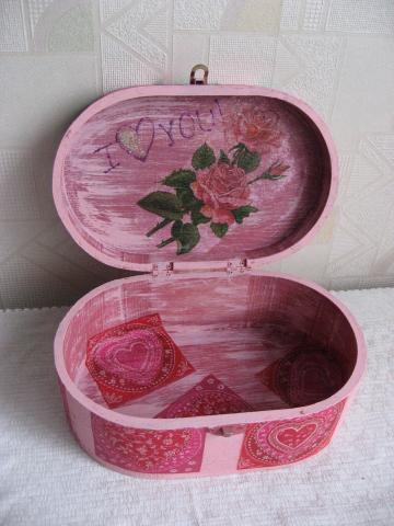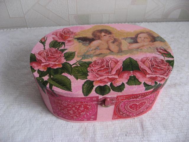dekupažuota dežutė "Rožinė svajonė" Dėžute graži, labai talpi, didelė. Labai mielos, grazios spalvos. padaryta su meile, savo rankom.