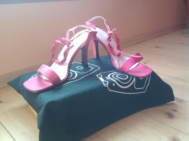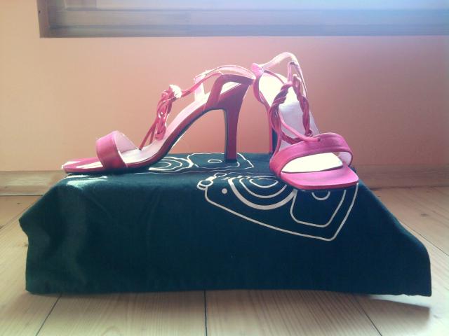Raišteliai rišasi apie koją. Spalva tikrovėje šiek tiek ryškesnė. Defektų nėra. Jei dar kas domina, rašykit.