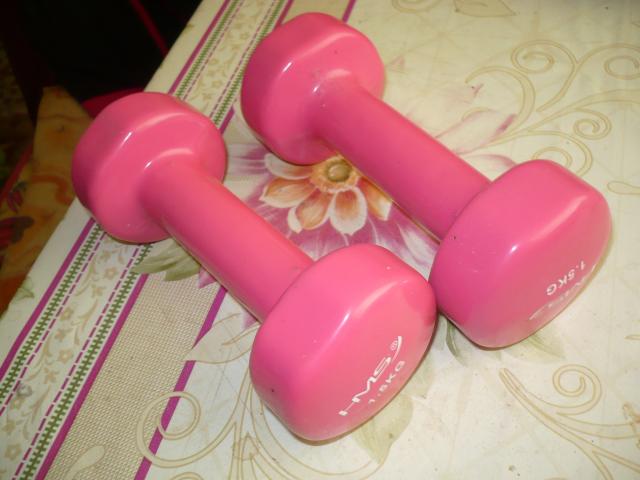 Nauji dailūs rožiniai hanteliukai. Nenaudoti.