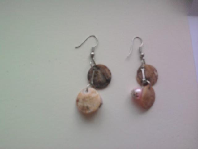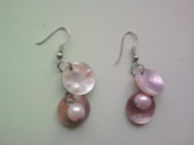 Dėl kainos visada galima derėtis:) Mano rankų darbo auskariukai. Karoliukai pagaminti iš kriauklyčių. Natūraliai blizga, ir yra šviesiai rožinės natūraliai atrodančios spalvos. Lengvi ir labai dailūs:) ilgis 4.5 cm.