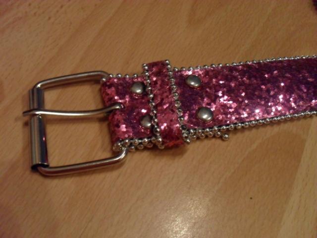 Nė karto nenešiotas, visiškai naujas, rožinis su daug blizgučių diržas.
