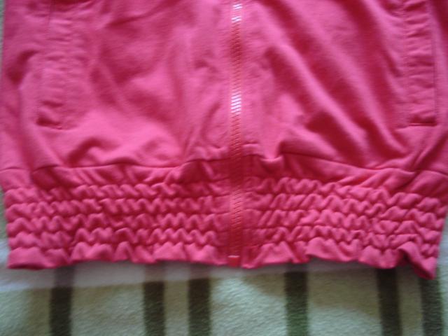 Rožinis džemperis rauktais rankovių galais, apačia ir apykakle
