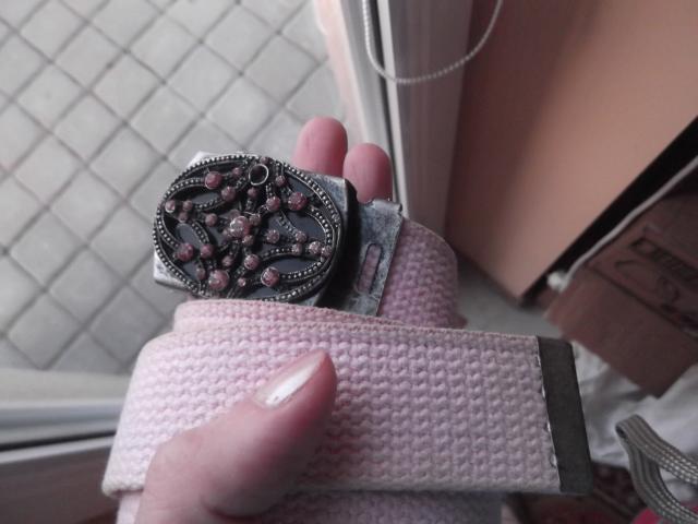 Jei gerai pamenu, pirkau iš NEXT. Pora akučių iš sagties iškritusių, bet atrodo, kad taip ir turi būti. Pats diržas šonuose vos vos patamsėjęs nuo nešiojimo, trynimosi į rūbus, bet turi išsiskalbti. 98 cm visas ilgis. Trumpinasi, reguliuojasi labai patogiai. Labai mylėtas diržiukas.
