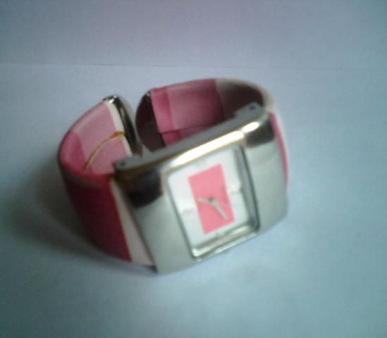 Grazus,gerai issaugotas laikrodis be defektu.Veikia puikiai.Stilingas,rankenele metaline dengta rozines spalvos medziaga.