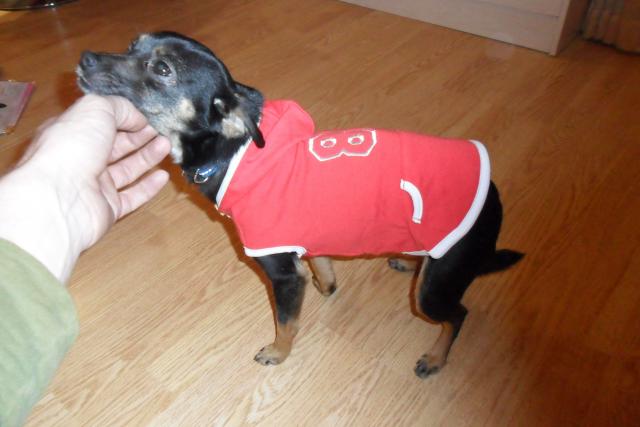 Nauji supakuoti rubeliai suniukams S dydis, yra tamsiai melyni, ruzavi ir raudoni. yra skyle pavadeliui prie kaklo.