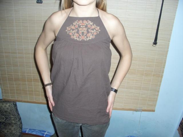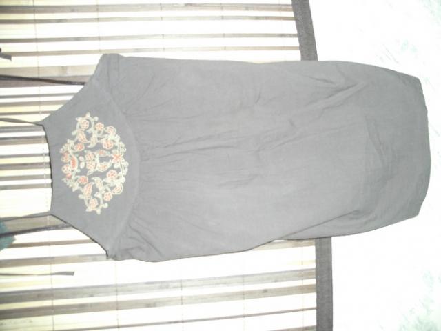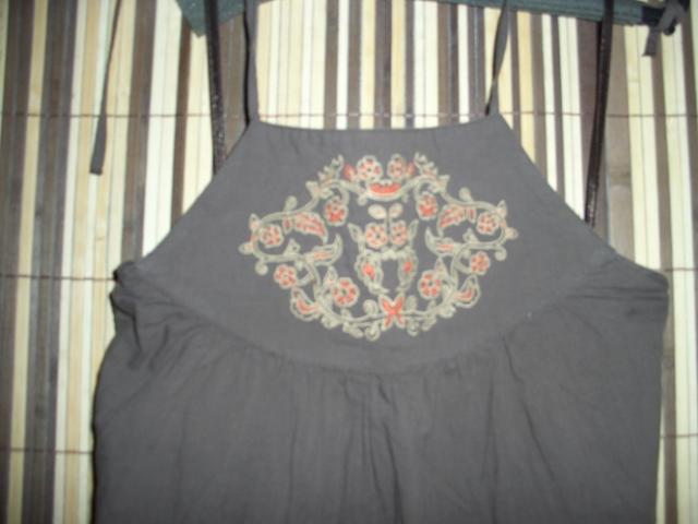 Spalva labiau kaip 2 foto. Labai gražus, pečius apnuoginantis rūbelis. S-M dydis. Gražus toks indiškas raštas ties krūtinės viršum ir kaklu :)