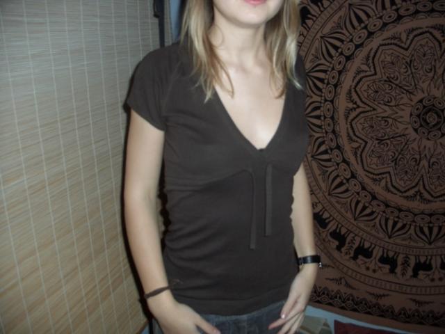 Sodri ruda spalva, iškirptė V formos gan gili. S-M dydis. Susiriša raišteliu po krūtine