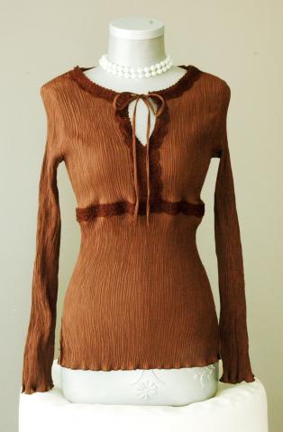 Maloni kūnui, dailiai apgulanti, glamžytos medžiagos palaidinė. Rudos spalvos, romantiška, geros būklės, mažai nešiota, tiesiog vis nerandu progos užsidėti, tai mielai mainyčiausi :).