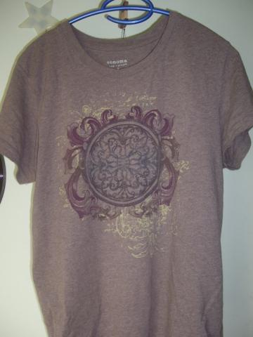 Šviesiai ruda maikutė su raštu priekyje.