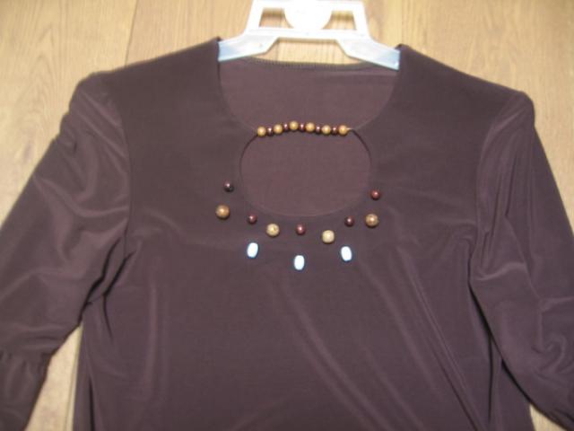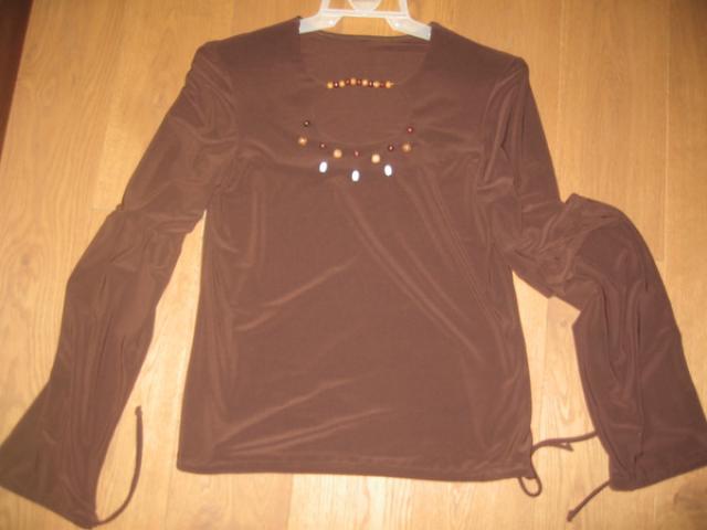 Siūta pagal užsakymą, tačiau išvis nenešiota palaidinė. Rankovių galuose ir palaidinės apačioje yra įverti šniureliai, tad rankoves ir apačią galimą šiek tiek suraukti. Labai malonios medžiagytės bliuskutė. Šiaip ji gan plati, manau tiktų ir M dydžiui.
