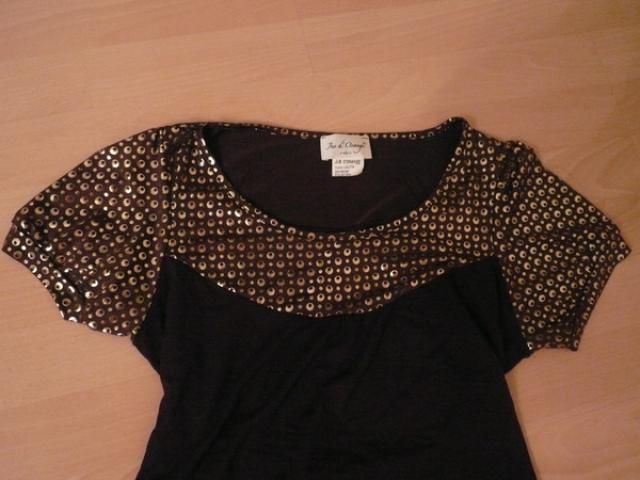 ruda palaidinė, žemiau klubų, viršuje aukso spalva, blizgi.