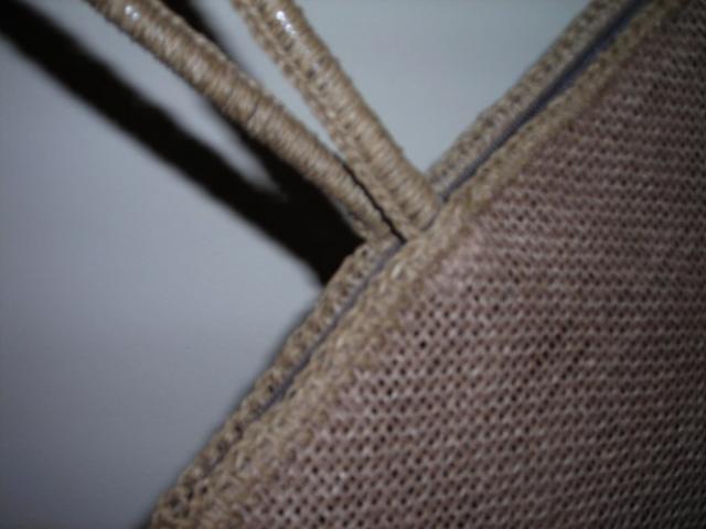 Ruda drobine rankine, suausta is storu siulu. Tinka vasarai, su uztrauktuku, viduje maza kisene. Rankine nelabai didele. Nenesiota.
