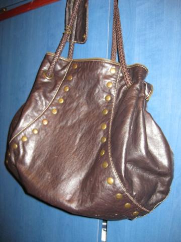 Labai graži ruda rankine. Viduje pamušalas išteptas nedidele rašalo dėme, nugarinėje dalyje, vienoje vietoje įbraukta oda, maždaug 2 cm ilgio. Šiaip atrodo labai gražiai, nors ir nemažai nešiojau :)