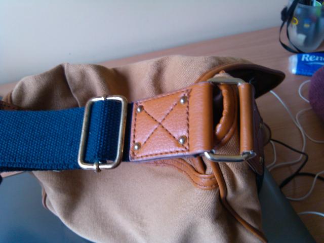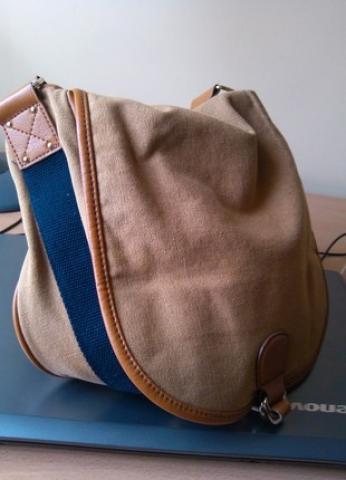 Graži, nauja ruda rankinė su mėlynais apvadais ir auksu puoštom detalėm. Pirkta iš H&M.