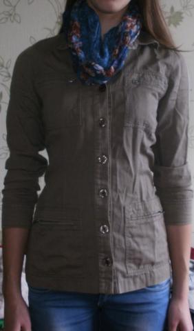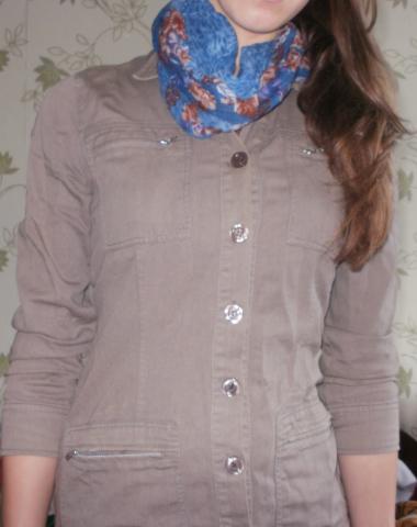 Džinsinis, rudos spalvos švarkelis, puikiai tinka ankstyvą vasarą ar vėlyvą pavasarį, gražiai atrodo.