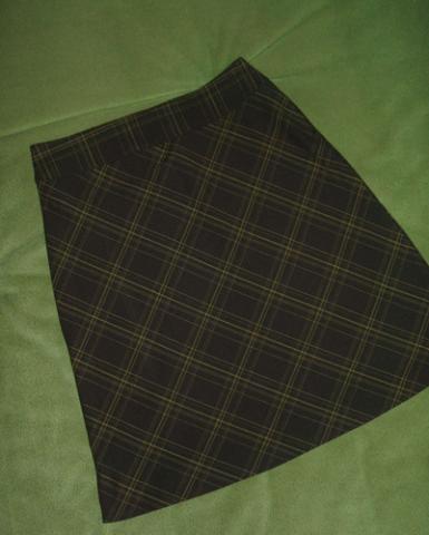 Dailus rudas sijonas su gelsvais langeliais. Iki kelių, pavasarinis-rudeninis modeliukas. Kažkodėl rašo dydį 34/36, nors realiai yra 38 (10). Būklė lb gera, be defektų