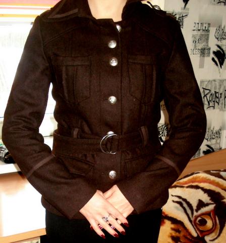 Siltesnis rudas paltukas,su dirzu ir kisenelem virsuj ant krutines ir po dirzu:)