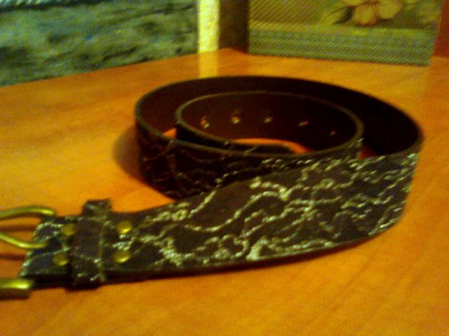 Diržas labai gražus ir puošnus, truputį blizga, nes siuvinėtas blizgančiais siūlais. Turi tokį defektą, kad vienoj vietoj viršus truputį atsiklijavęs nuo pagrindo, tačiau tai juk labai lengvai ir greitai sutvarkoma. :)