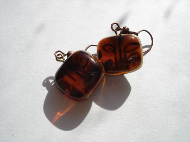 Stikliniai rankų darbo auskarai. Antialerginiai kabliukai.