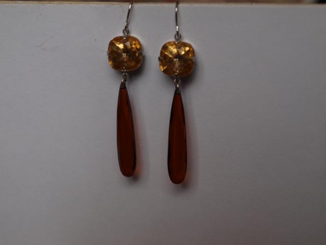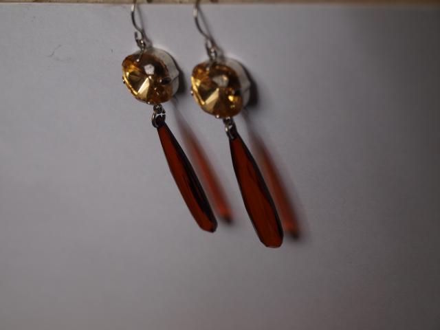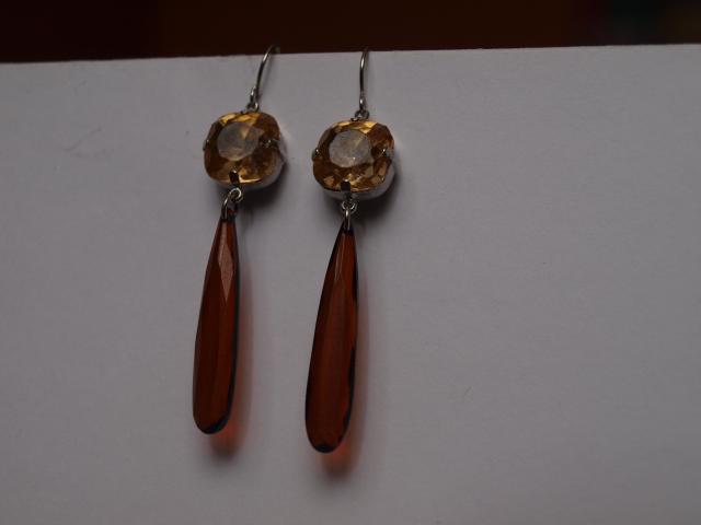 Rudi laselio formos auskarai su akmeneliu