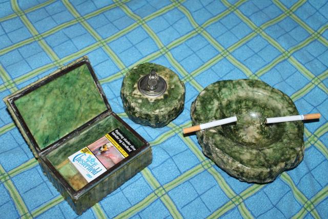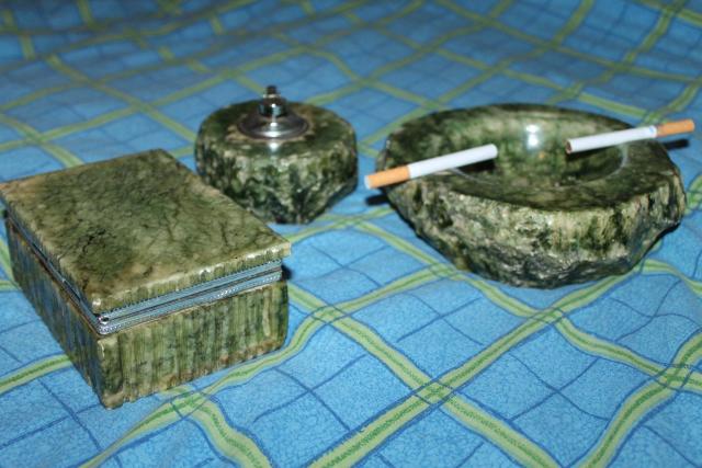 Itališkas komplektėlis-dėžutė tabakui,žiebtuvėlis ir peleninė iš žalio akmens ,plius siuntimas