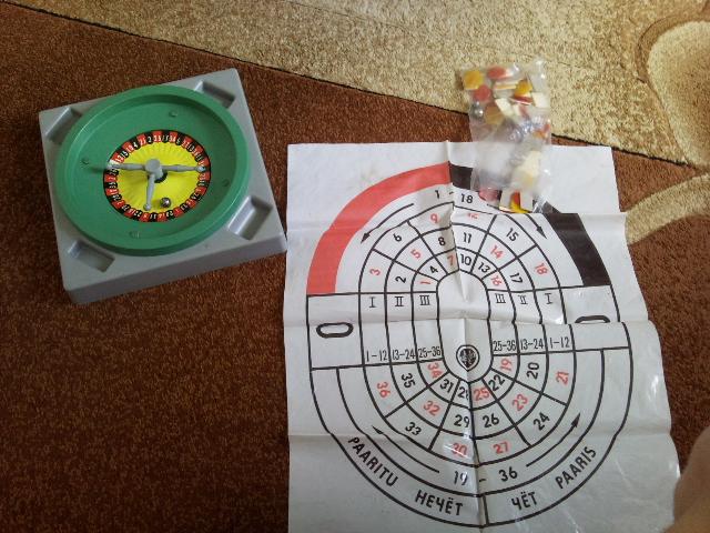 Ruletė, žetonai, rutuliukas metalinis ir statymu laukas. Kaina sutartine. Defektai matosi is foto
