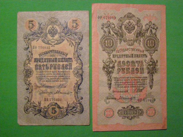 1,2 foto - 1 rublis 1898 m., 3 rubliai 1905 m. 3,4 foto - 5 rubliai 1909 m., 10 rubliu 1909 m.