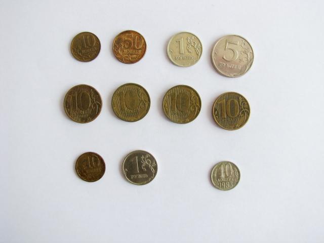 Stovis foto. Komplektukas 11 monetų: Maskvos monetų kalykla: 10 kap. 2011 m,50 kap. 2010 m, 1 rublis 2007 m, 5 rub. 1998 m, 10 r. 2009,2010,2011 ir 2012 m, Sankt Peterburgo monetų kalykla 10 kap ir 1 r. 2008; CCCP 10 kap 1983 m.