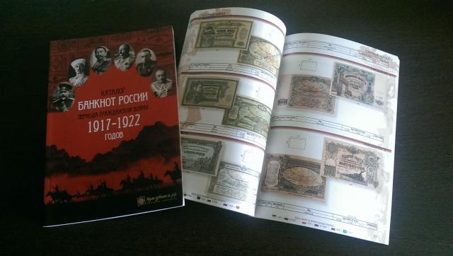 Rusijos banknotų katalogas 1717-1922, pilietinio karo laikotarpio Spalvotas katalogas apie išleistus banknotus Banknotų tiražai, dydis, parašai, vandens ženklai, kainos ir kt. Katalogas iš 200 puslapių 2016 m leidimas