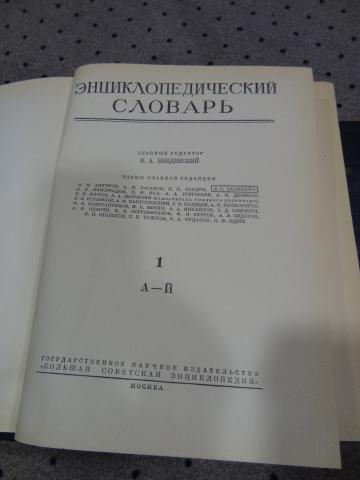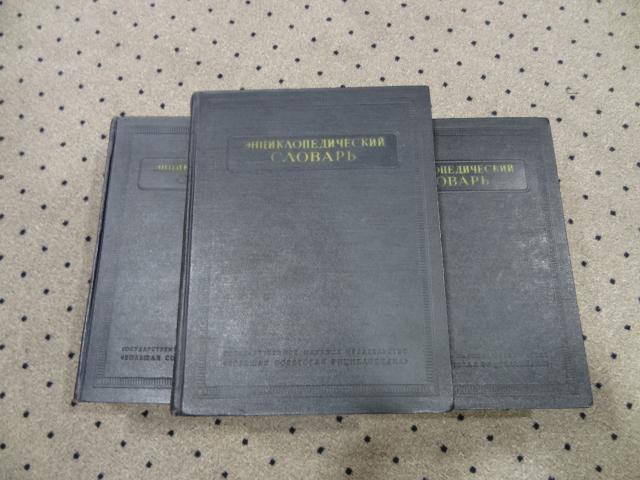 Enciklopedicheskij slovar. 3 tomai po 700 psl. Maskva. Gosudarstvennoje nauchnoje izdatelstvo. Bolshaja sovetskaja enciklopedija. Išleista 1955 m.