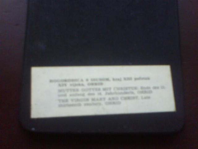 13,5 x 9,5 cm; užrašas kitoje pusėje - BOGORODICA S ISUSOM, kraj XIII početak XIV vijeka, OHRID; THE VIRGIN MARY AND CHRIST, Late thirteenth century, OHRID