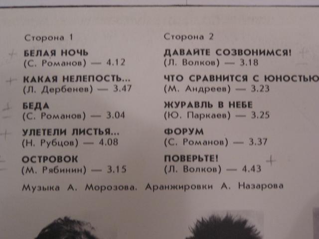 1. LP Forum „Belaja nočj“ 1985, 1987 „Melodija“. Rusiškas pop. 2. CD Ultra russkij hit 2002 19 rusiškų popdainų, sąrašas nuotr. 3. CD Басков, Николай «Шедевры уходящего века» 4. CD Starye pesni o glavnom. postskriptum 2000 Compilation album, 21 songs: Natasha Koroleva, Tatyana Bulanova, Lyudmila Gurchenko, Valeriya, Anzhelika Varum, Ivanushki International, Mumiy Troll, Vladimir Kuzmin, Marina Hlebnikova, Leonid Agutin, Oleg Gazmanov, Igor Nikolaev, Valeriy Meladze, Maksim Leonidov, Valer