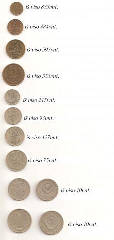Rusiskos kapeikos, skirtingu metu bei skirtingu nominalu.