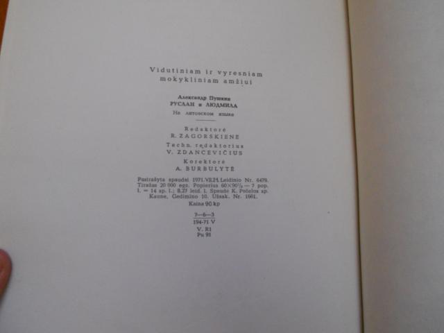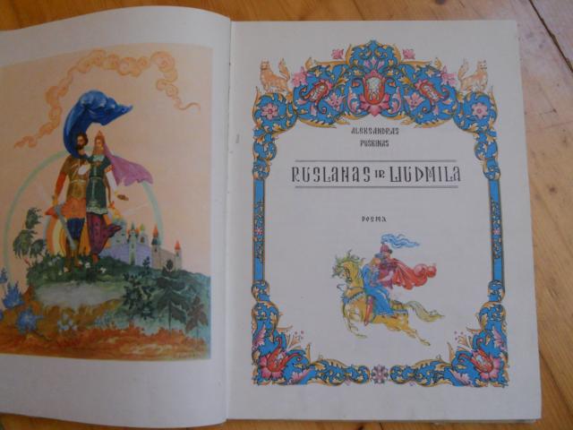 Ruslanas ir Liudmila, a. puskinas, 1971, iliustravo Palecho dailininkai : B. Parilovas ir V. Dudorovas, verte K. Kubilinskas, virselis ne idealios bukles, vidus tvarkingas, vienoj vietoj buvo priklijuotas lipdukas