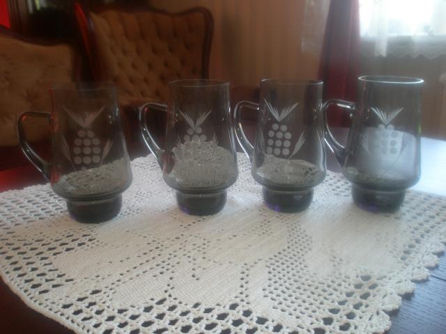 rusų laikų stikliniai bokalai .tamsinto stiklo.