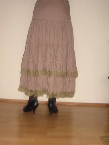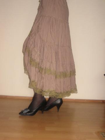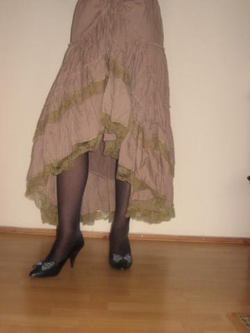 Labai mielas, priekyje šiek tiek trumpesnis. Sijono dydis universalus, nes susiriša ir taip reguliuojasi.