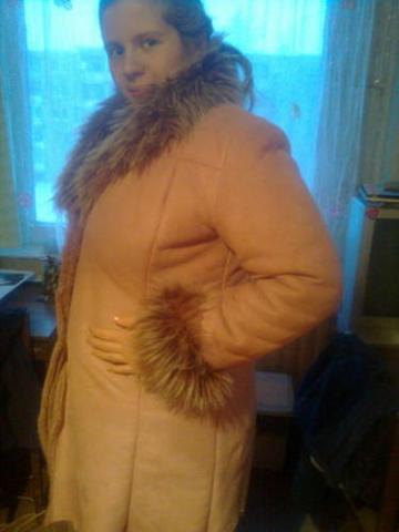 Kailiniai iki kelių, su kailiuku ant rankoviu, susegama sagomis. Dydis XL