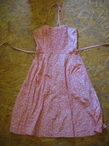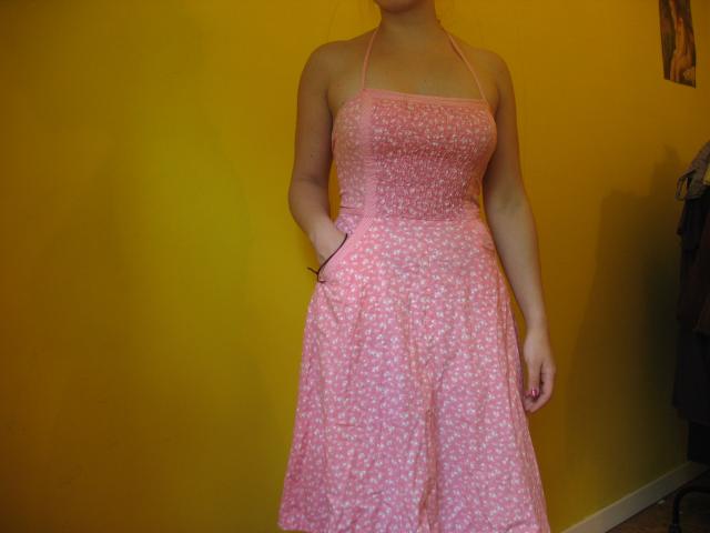 Labai grazi, vasariska suknele. Raistukai per kakla ir per juosmeni. yra kisenes. labai patogi. ilgis mazdaud iki keliu, jei esi 1,67 :] dydis 38 tinka ir s ir m.
