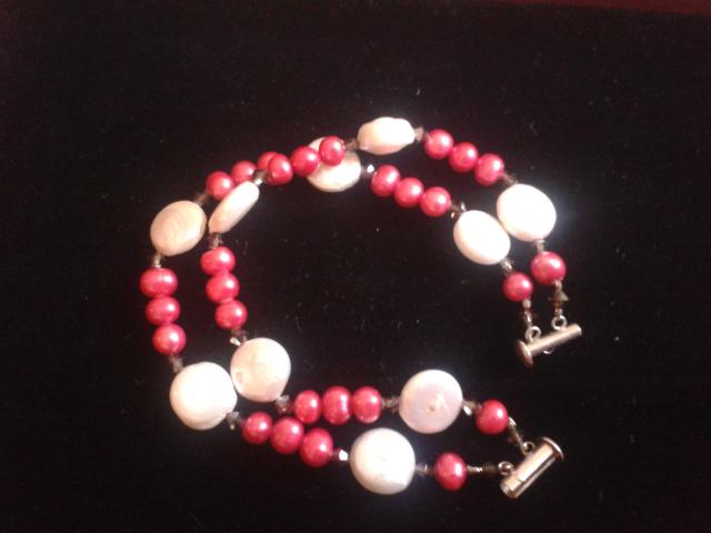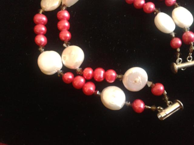 dvieju eiliu, naturalus akmenukai, perlai, swarovski kristalai