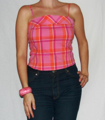 Graži ryški bliuskutė ant šleikučių. Dydis parašytas 14, bet tikrai labiau tinkantis S ar M. Gražiai išformuota krūtinė, medžiaga kiek tampri, taigi prisitaikanti.