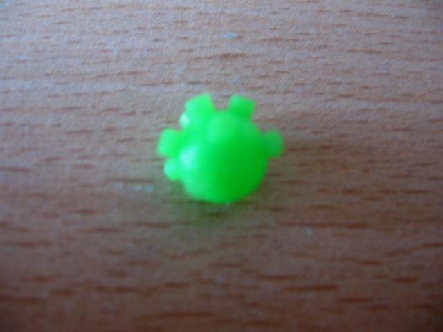 Ryškiai žalias liežuvinio auskaro užsukimas.