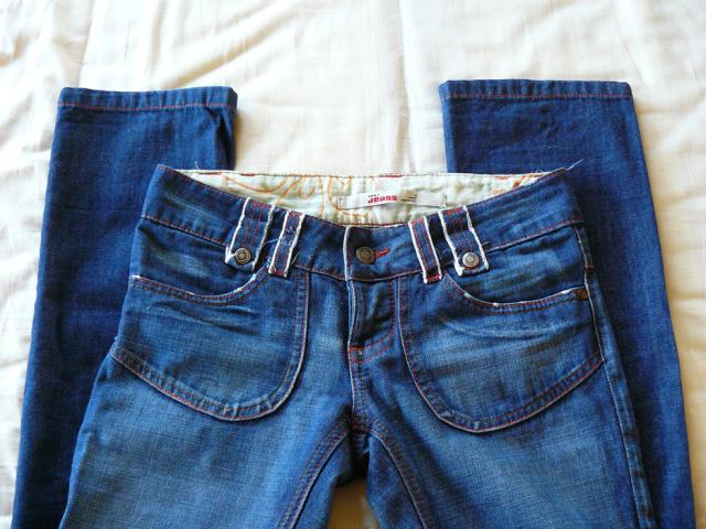Nu jau gražūs, tai gražūs jie man :) Bet netelpu :( neįlendu net nuotraukai. Manau tiks kas nešioja XS :). Spalva sodri mėlyna, labai puošia raudonos siūlės. Gal kiek ir dėvėti, sunku pasakyti, nes nėra prie ko prikipti. Parvežti iš Vokietijos.