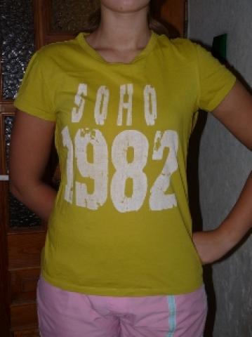 ryškūs salotiniai marškinėliai. Dirbtinai aptrinti. Nenunesioti